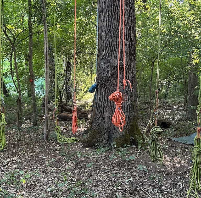grimper sur sa corde comme une araignée, en utilisant un système d'auto-assurage avec un nœud autobloquant,