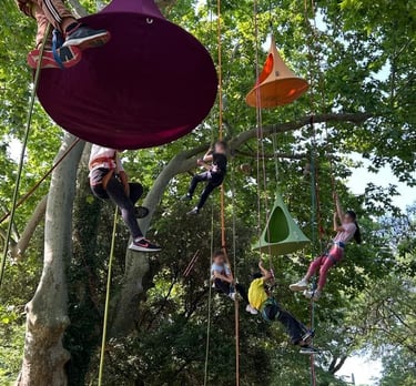 Cap Canopée propose également des moments de reconnexion, tels que des hamacs, des filets, des trampolines, des siestes musicales et des contes.